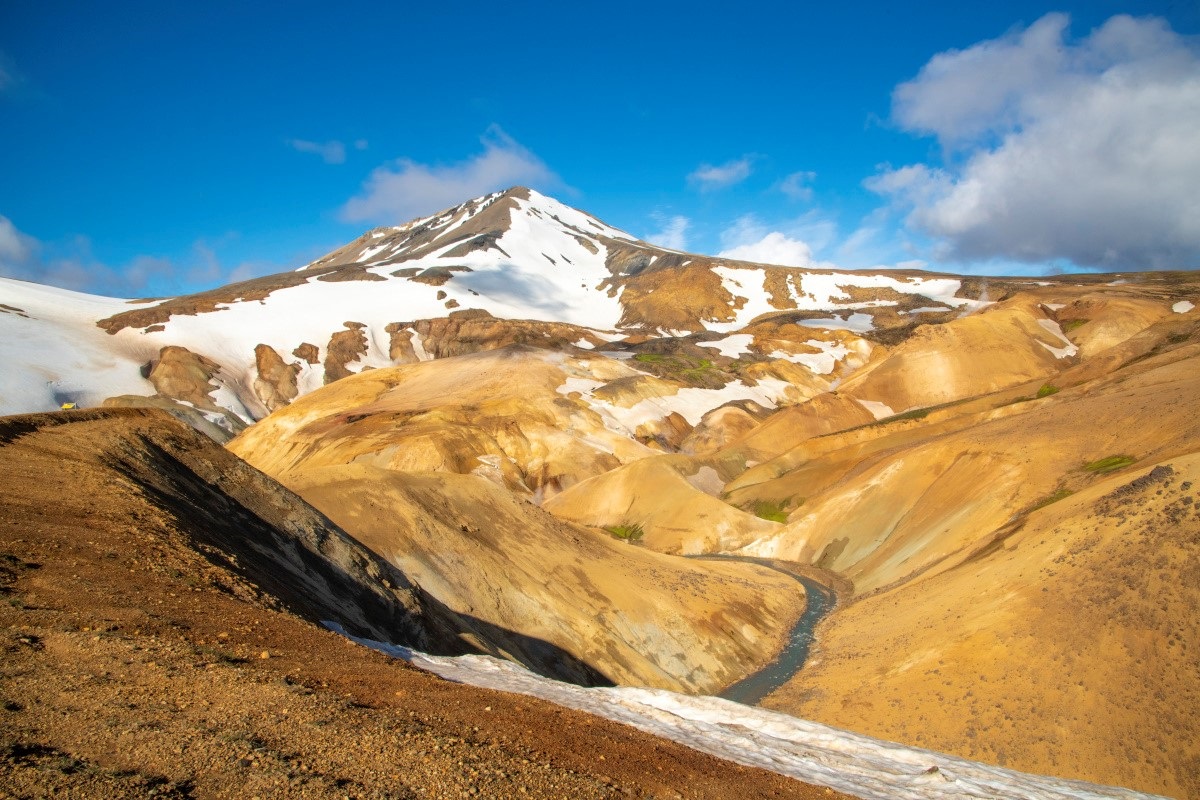 De binnenlanden van IJsland zijn groot en uitgestrekt. Je vindt hier onbeschrijfelijk mooie plekjes afgewisseld met kale, woeste zandwoestijnen. De Kjölur (weg F35) is de best begaanbare route, hier hoeven geen rivieren doorstoken te worden. Op deze route vind je de heetwaterbronnen van Hveravellir en het spectaculaire gebied Kerlingarfjöll, waar je kunt wandelen in het dal van de hete bronnen (Hveradalir). Dit gebied met zeer kleurrijke bergen, door de aanwezigheid van ryoliet, leent zich uitstekend voor het maken van een schitterende wandeling en uiteraard voor het maken van prachtige foto’s!